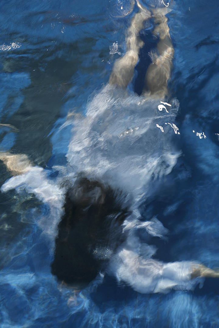 The summer heat in Texas inspired this series of images. The color of the water and the motion created by the swimmer and her dress reminded me of Impressionistic painting. Photoshop tools allowed me to paint these images in an Impressionistic style.