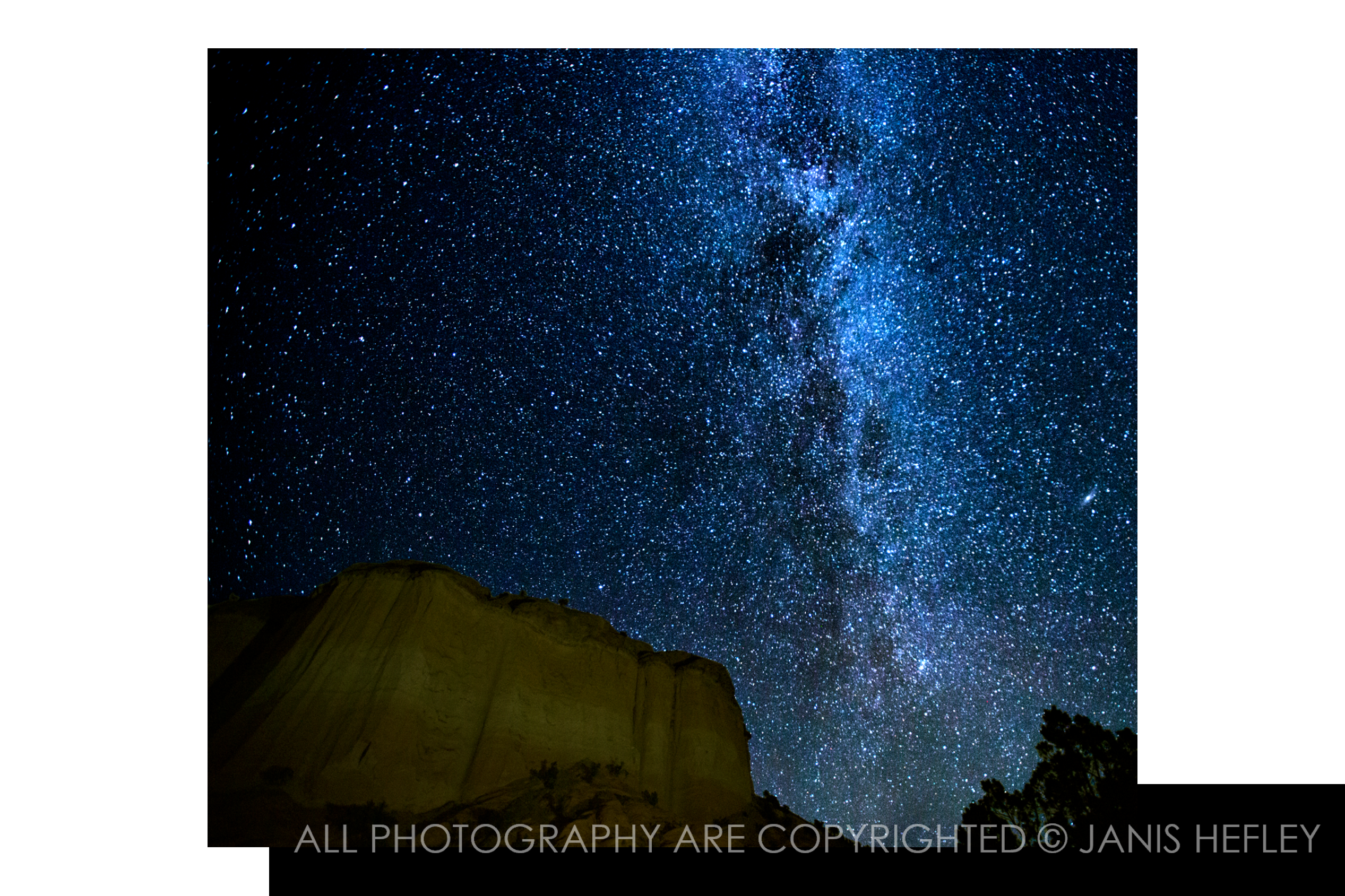My fascination with stars, constellations and galaxies lead me to explore night photography. While researching the best places to shoot the night sky, I learned about International Dark Sky Places, which are remote locations possessing an exceptional quality of starry nights. I chose to explore New Mexico’s night sky for this series. I live in Dallas, Texas and do not have the opportunity to view many stars in the sky because of the city light pollution. The most wonderful part of this experience was viewing the infinite number of stars illuminating the sky. It was an awe inspiring, spiritual experience.